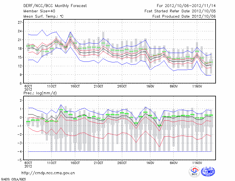 岳 阳 (LAT:29.38 LON:113.08) 2012-10-06        预测