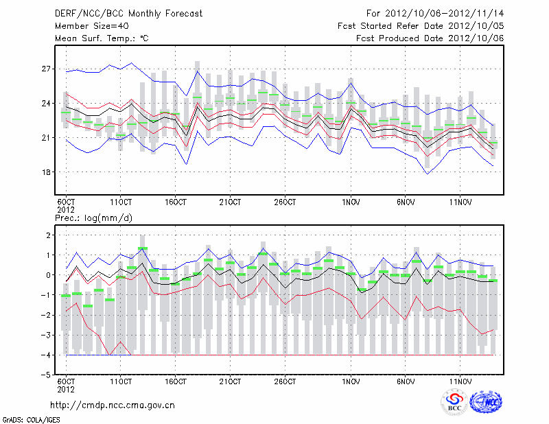 南 宁 (LAT:22.82 LON:108.35) 2012-10-06        预测