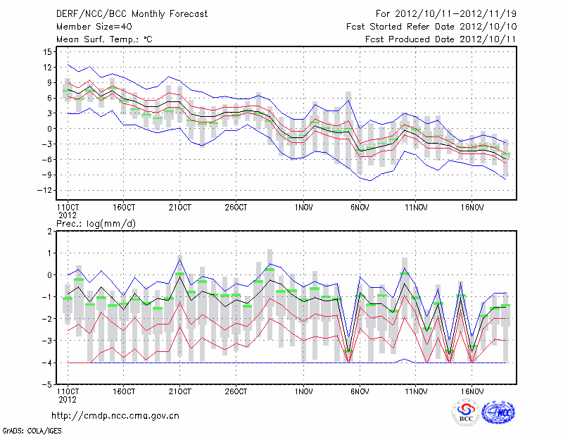 乌兰浩特 (LAT:46.08 LON:122.05) 2012-10-11        预测