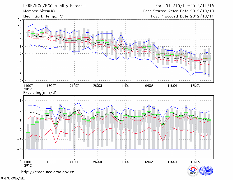 乌 苏 (LAT:44.43 LON:84.66) 2012-10-11        预测