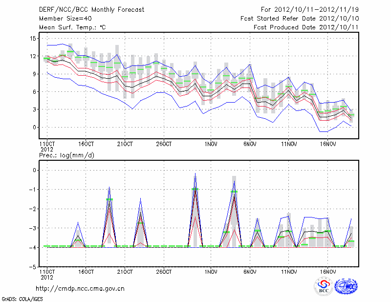 且 末 (LAT:38.15 LON:85.55) 2012-10-11        预测