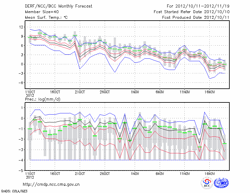 西 宁 (LAT:36.62 LON:101.77) 2012-10-11        预测