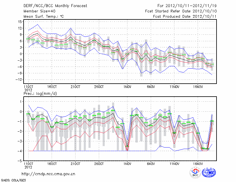 林 东 (LAT:43.98 LON:119.40) 2012-10-11        预测