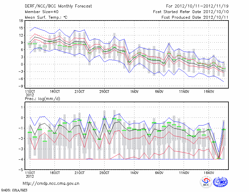 赤 峰 (LAT:42.27 LON:118.97) 2012-10-11        预测