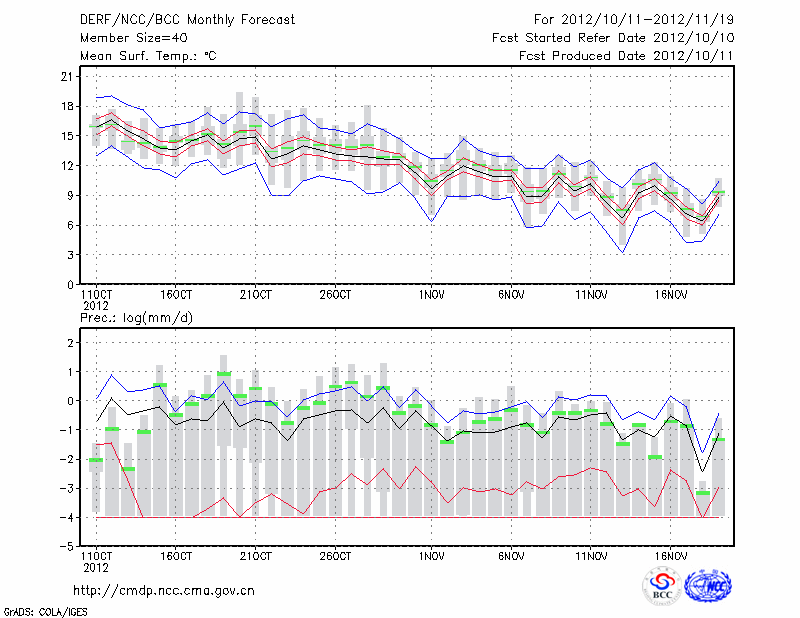 潍 坊 (LAT:36.70 LON:119.08) 2012-10-11        预测