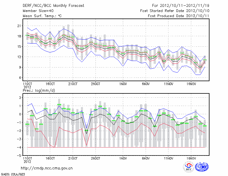 青 岛 (LAT:36.07 LON:120.33) 2012-10-11        预测