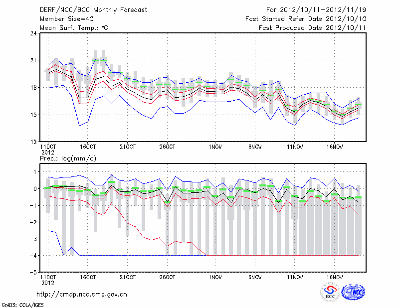 临 沧 (LAT:23.95 LON:100.22) 2012-10-11        预测