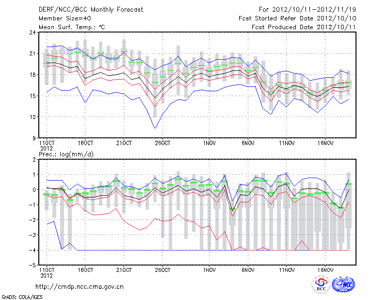 蒙 自 (LAT:23.38 LON:103.38) 2012-10-11        预测