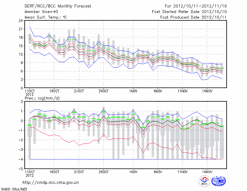西 安 (LAT:34.30 LON:108.93) 2012-10-11        预测