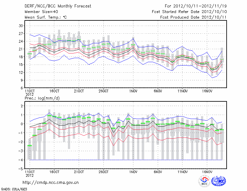 赣 州 (LAT:25.85 LON:114.95) 2012-10-11        预测