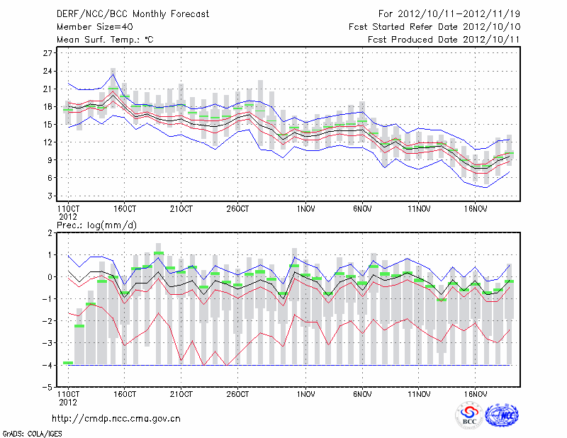 南 京 (LAT:32.00 LON:118.80) 2012-10-11        预测