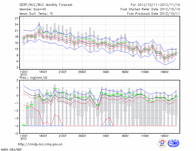 合 肥 (LAT:31.87 LON:117.23) 2012-10-11        预测