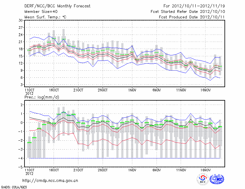 屯 溪 (LAT:29.71 LON:118.28) 2012-10-11        预测