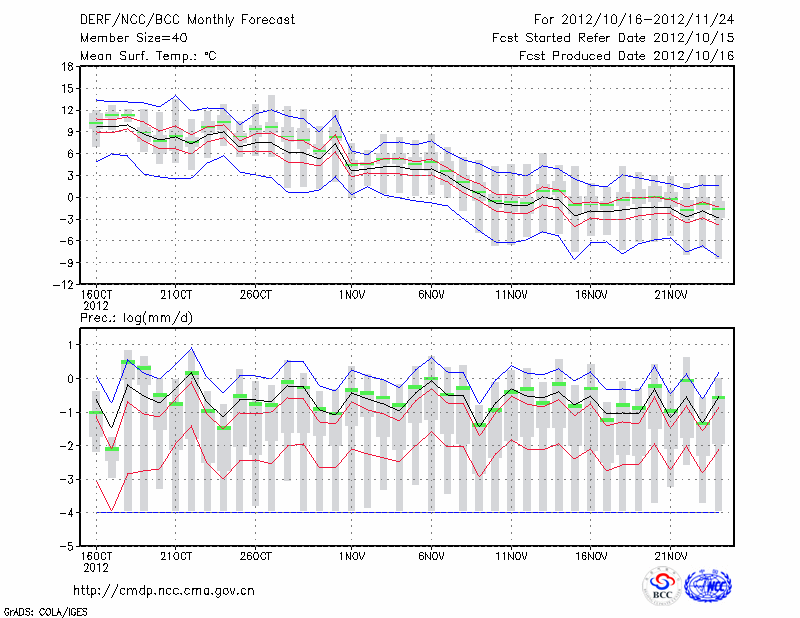 乌 苏 (LAT:44.43 LON:84.66) 2012-10-16        预测