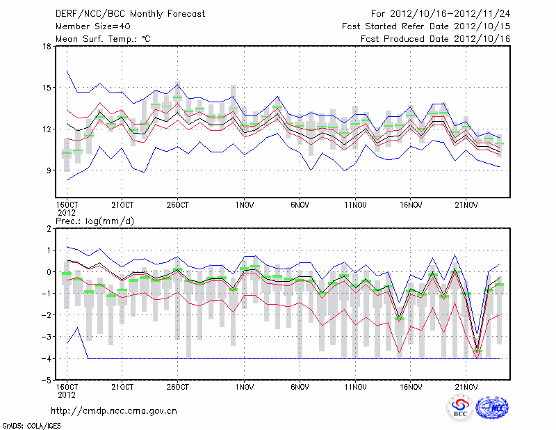 丽 江 (LAT:26.83 LON:100.47) 2012-10-16        预测