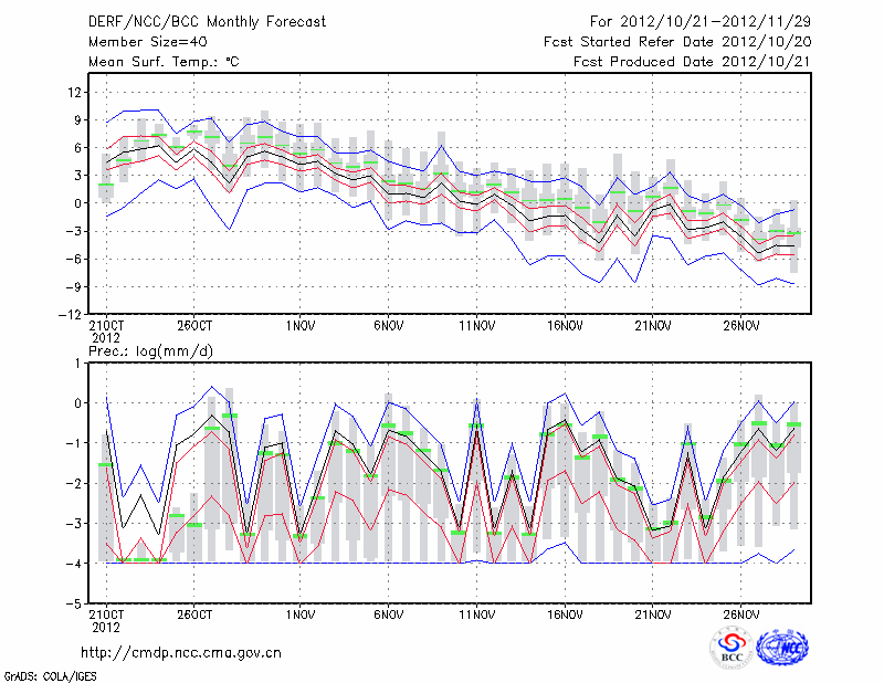 酒 泉 (LAT:39.77 LON:98.48) 2012-10-21        预测