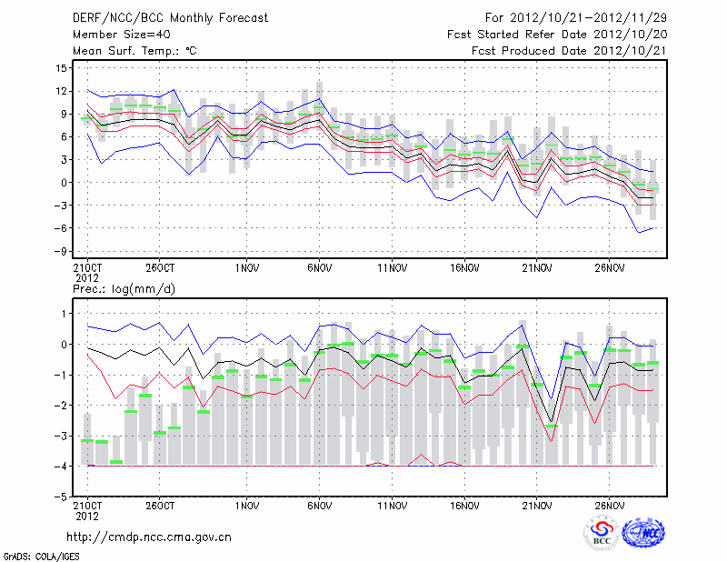 延 安 (LAT:36.60 LON:109.50) 2012-10-21        预测