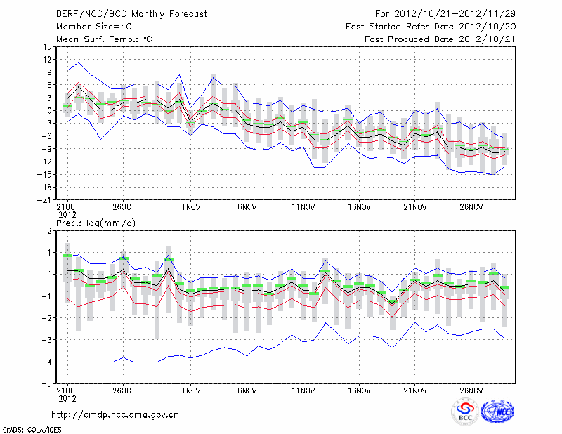 牡 丹 江 (LAT:44.57 LON:129.60) 2012-10-21        预测