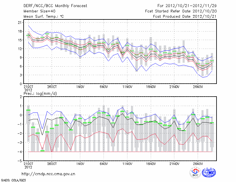 青 岛 (LAT:36.07 LON:120.33) 2012-10-21        预测