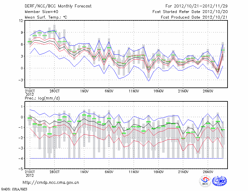 甘 孜 (LAT:31.62 LON:100.00) 2012-10-21        预测