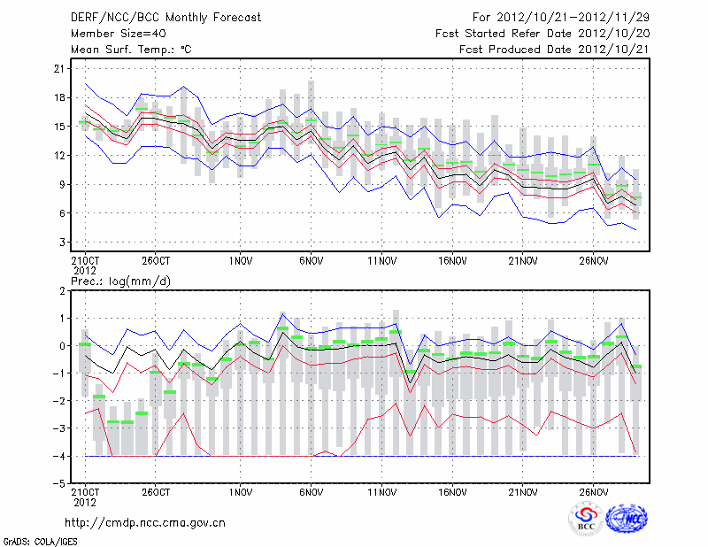 东 台 (LAT:32.87 LON:120.32) 2012-10-21        预测