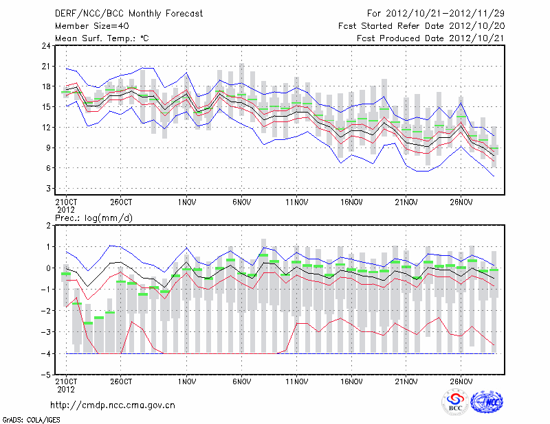 杭 州 (LAT:30.23 LON:120.17) 2012-10-21        预测