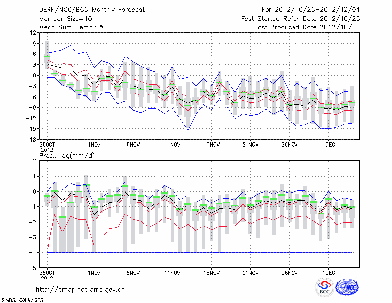 哈 尔 滨 (LAT:45.75 LON:126.77) 2012-10-26        预测