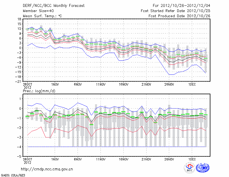乌 苏 (LAT:44.43 LON:84.66) 2012-10-26        预测