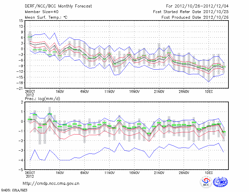 牡 丹 江 (LAT:44.57 LON:129.60) 2012-10-26        预测