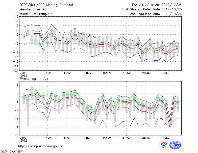 锡林浩特 (LAT:43.95 LON:116.07) 2012-10-26        预测