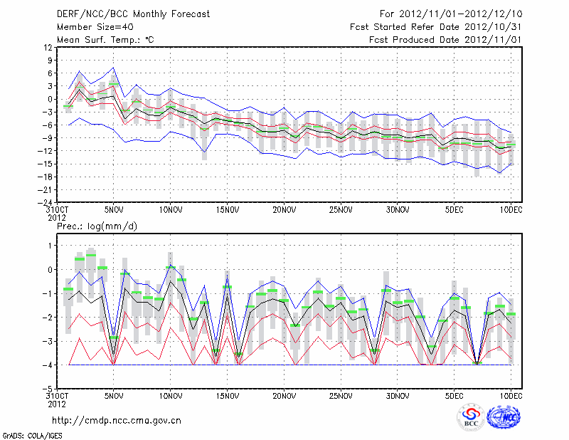 乌兰浩特 (LAT:46.08 LON:122.05) 2012-11-01        预测