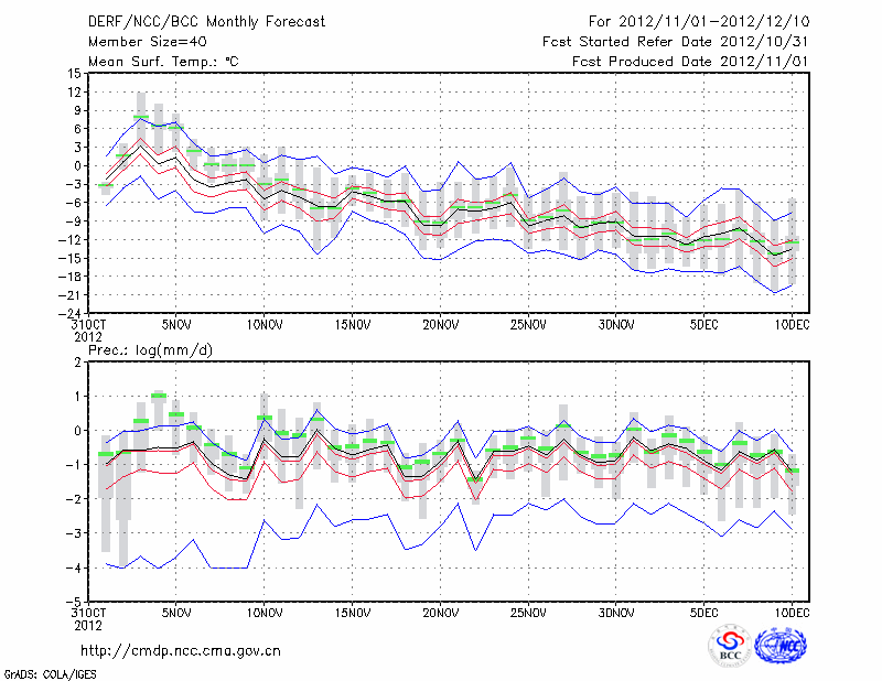 鸡 西 (LAT:45.28 LON:130.95) 2012-11-01        预测