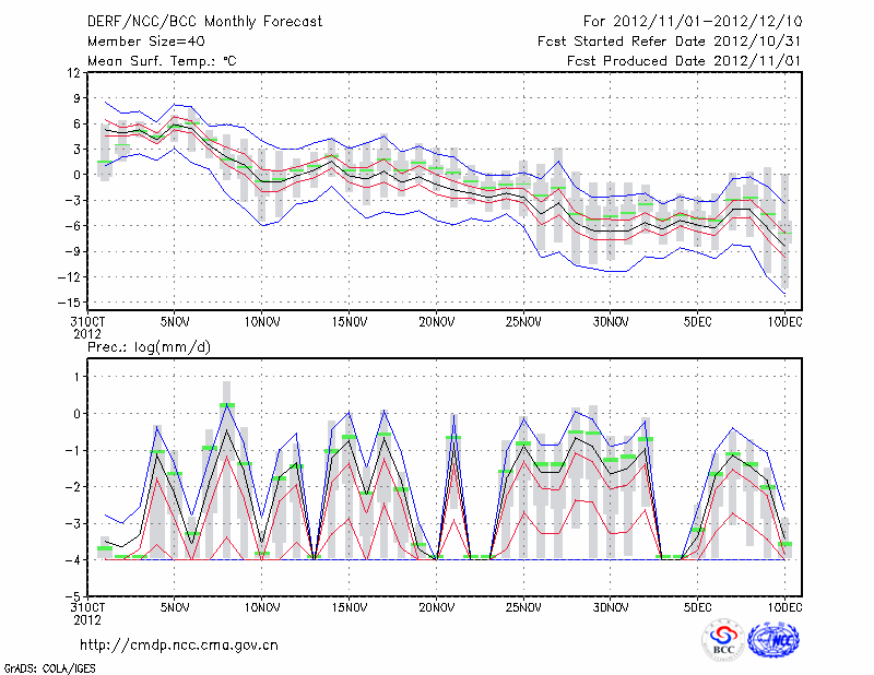 哈 密 (LAT:42.82 LON:93.52) 2012-11-01        预测