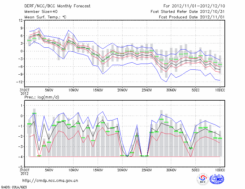 武 威 (LAT:38.05 LON:102.55) 2012-11-01        预测