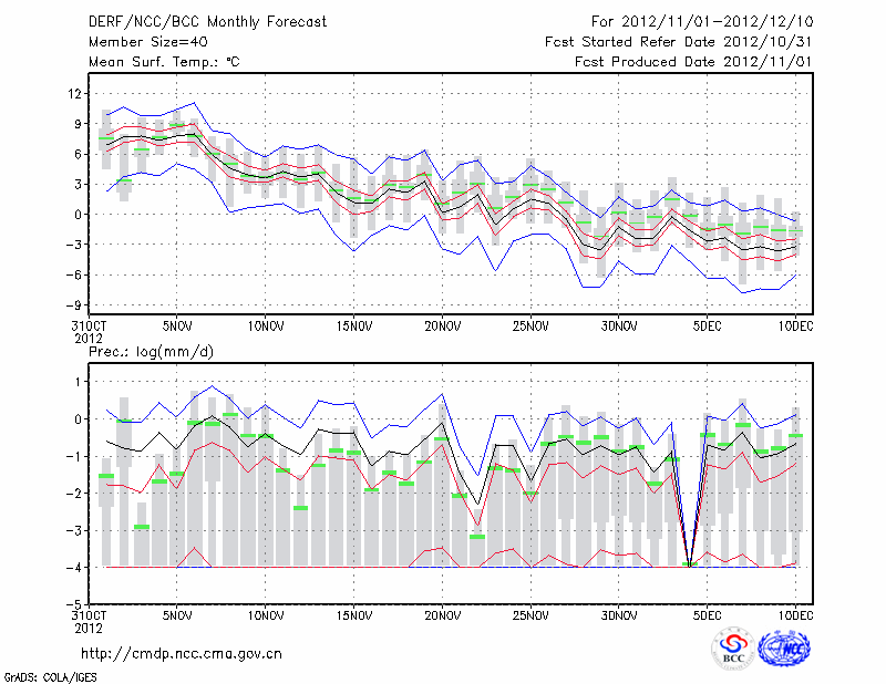 延 安 (LAT:36.60 LON:109.50) 2012-11-01        预测