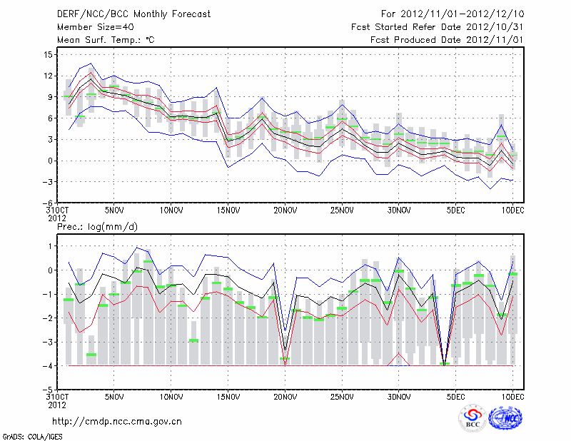 临 汾 (LAT:36.05 LON:111.32) 2012-11-01        预测