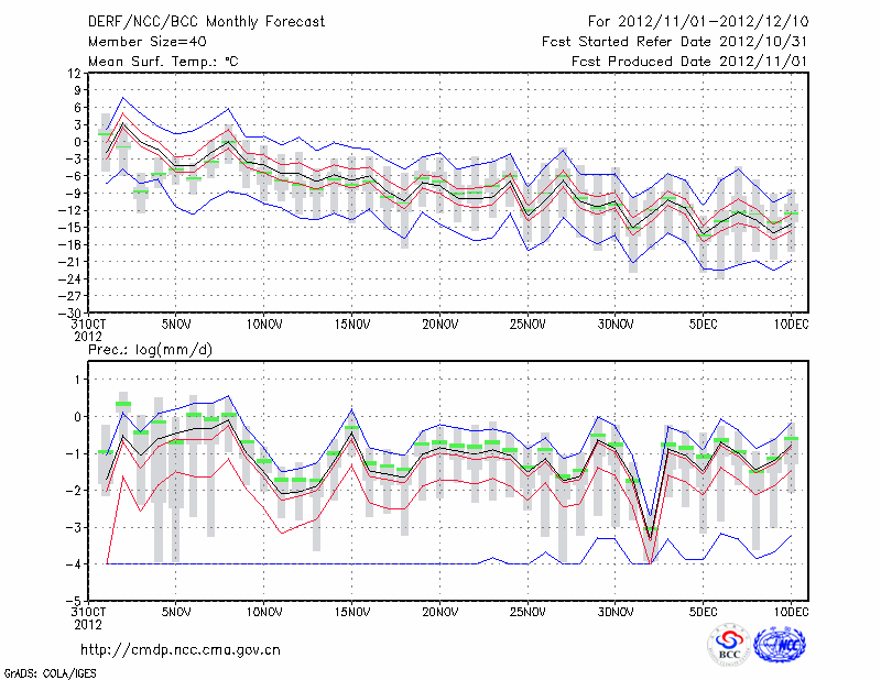 锡林浩特 (LAT:43.95 LON:116.07) 2012-11-01        预测