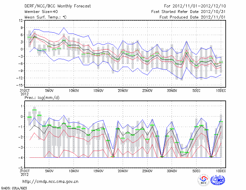 赤 峰 (LAT:42.27 LON:118.97) 2012-11-01        预测