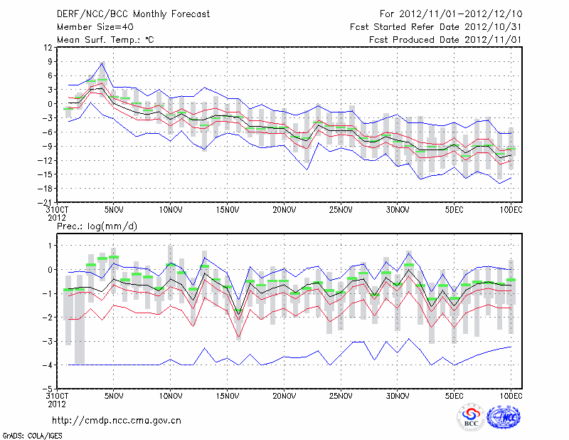 延 吉 (LAT:42.88 LON:129.47) 2012-11-01        预测