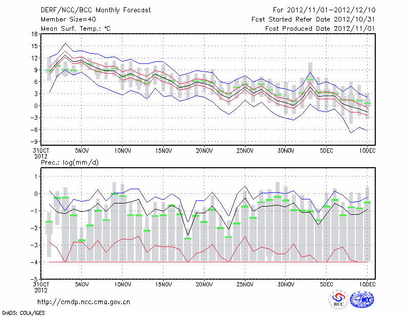 潍 坊 (LAT:36.70 LON:119.08) 2012-11-01        预测