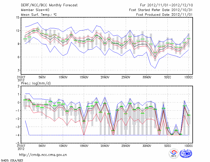丽 江 (LAT:26.83 LON:100.47) 2012-11-01        预测