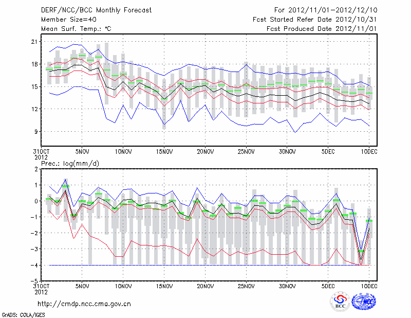 蒙 自 (LAT:23.38 LON:103.38) 2012-11-01        预测