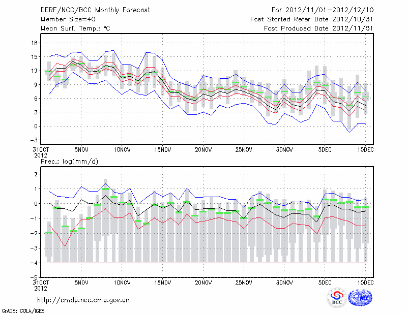 信 阳 (LAT:32.13 LON:114.05) 2012-11-01        预测