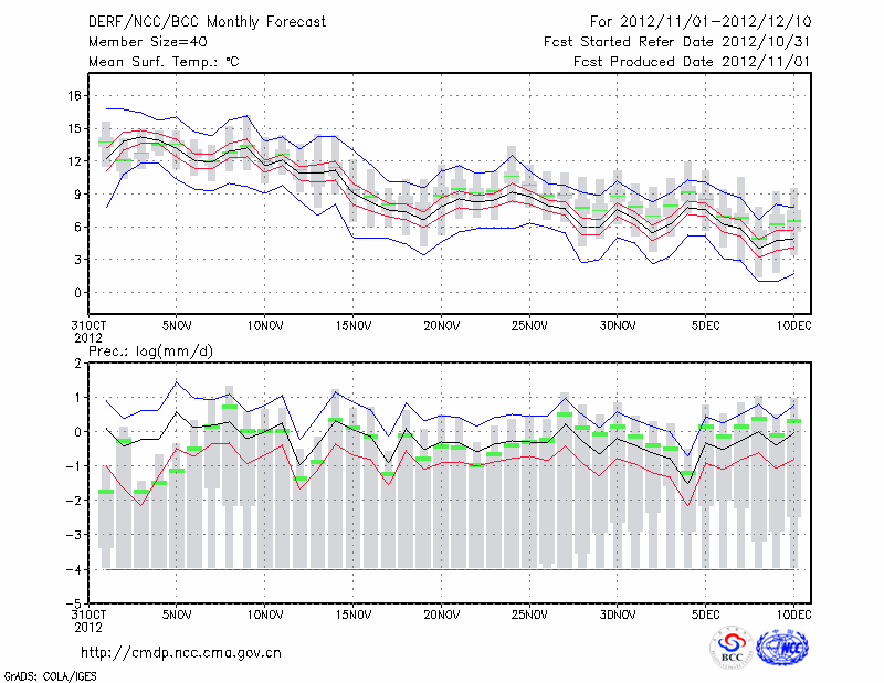 钟 祥 (LAT:31.17 LON:112.57) 2012-11-01        预测