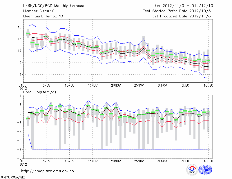 南 充 (LAT:30.80 LON:106.08) 2012-11-01        预测
