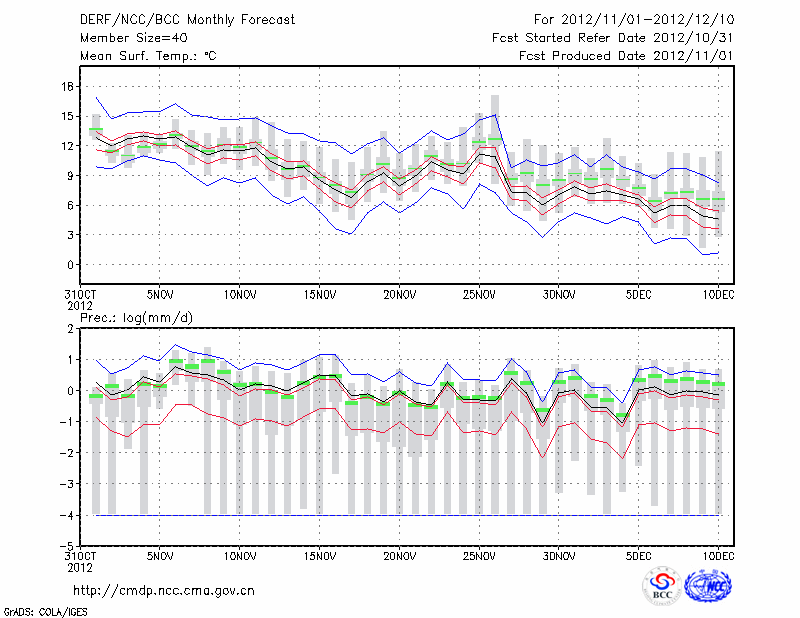 酉 阳 (LAT:28.83 LON:108.77) 2012-11-01        预测