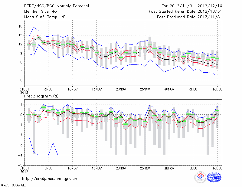 毕 节 (LAT:27.30 LON:105.23) 2012-11-01        预测