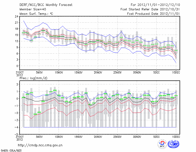 衢 县 (LAT:28.97 LON:118.87) 2012-11-01        预测