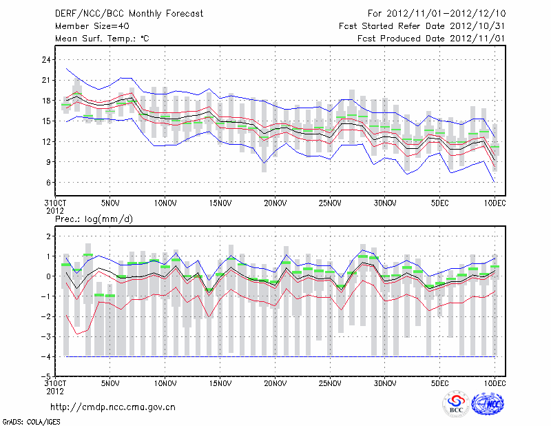 温 州 (LAT:28.02 LON:120.67) 2012-11-01        预测