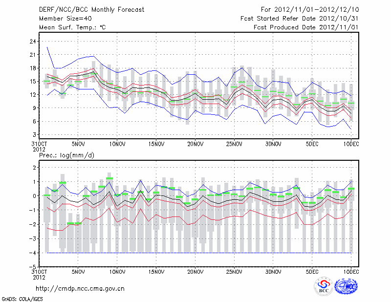浦 城 (LAT:27.92 LON:118.53) 2012-11-01        预测